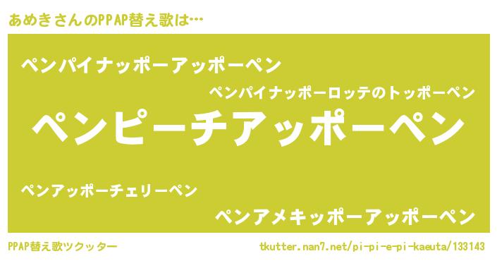 | ヘコむあだ名 | 『あめにー』『あめき(笑)』『あめお』 |