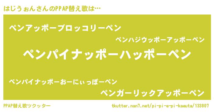 | ピコ太郎風あだ名 | 『ピコハ郎』『ピハ十郎』『ハコ史郎』 |