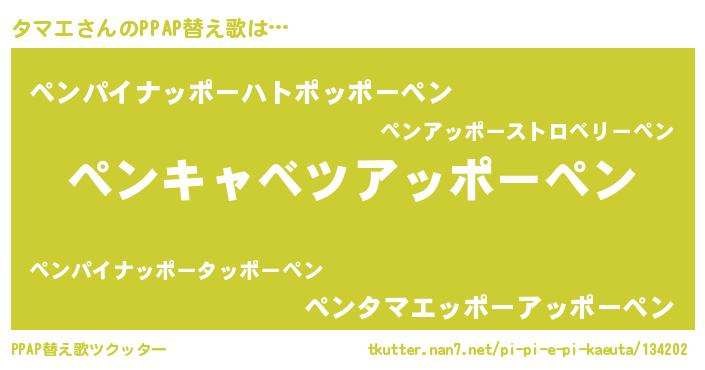 | 料理風あだ名 | 『タマエごはん』『タマエのトマト煮』 |