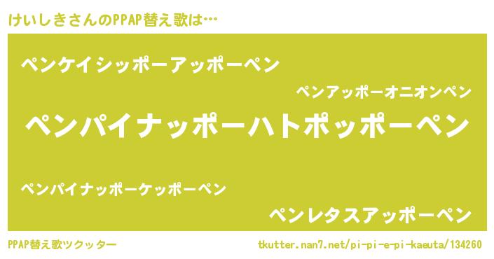| ピコ太郎風あだ名 | 『ケケ太郎』『ケイ一郎』『ケコ史郎』 |