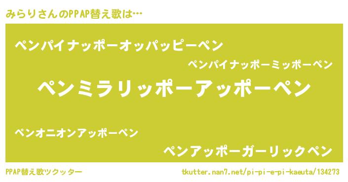 | ピコ太郎風あだ名 | 『ミラ八郎』『ミミ太郎』『ピミ十郎』 |