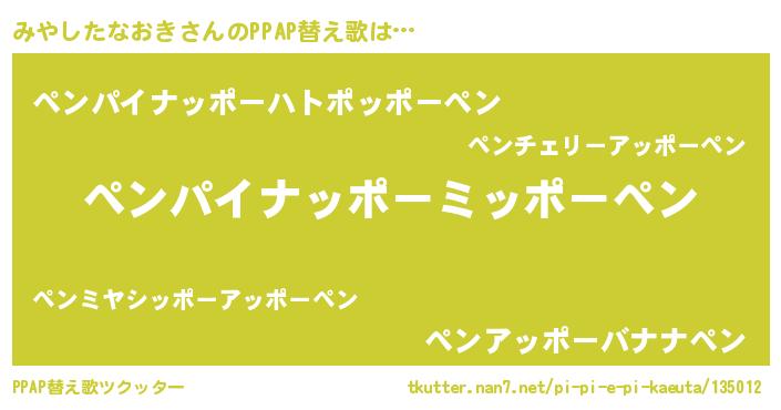 | 可愛いあだ名 | 『みやしたなおきママ』『みやうちぇる』 |