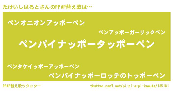 | 胡散臭い通販商品みたいなあだ名 | 『絶対に幸福をもたらす水素水…その名も「たけいしはると」』 |