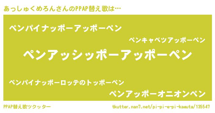 | 欧米人風あだ名 | 『ウサインあっしゅくめろん』 |