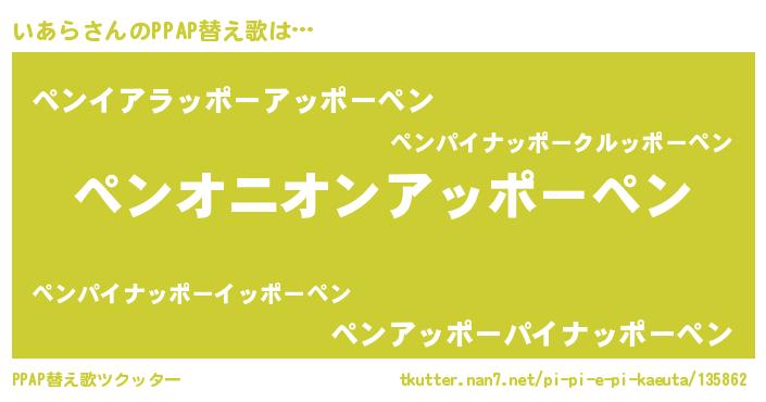 | ピコ太郎風あだ名 | 『イコ六郎』『イア史郎』『ピイ八郎』 |