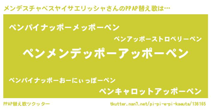 | ポケモン風あだ名 | 『ヒメンデスチャベスヤイサエリッシャ』 |