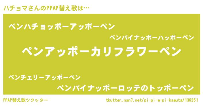 | ピコ太郎風あだ名 | 『ピハ史郎』『ハチ十郎』『ハハ太郎』 |