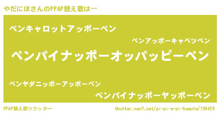 | 欧米人風あだ名 | 『ダニエルやだにほ』『マイケルやだにほ』 |