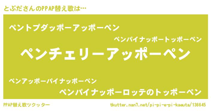 | 意味不明あだ名 | 『自称とぷだ』『ペロリンとぷだ』 |