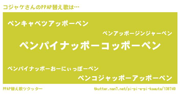 | 意味不明あだ名 | 『永久保存コジャケ』『ペロリンコジャケ』 |