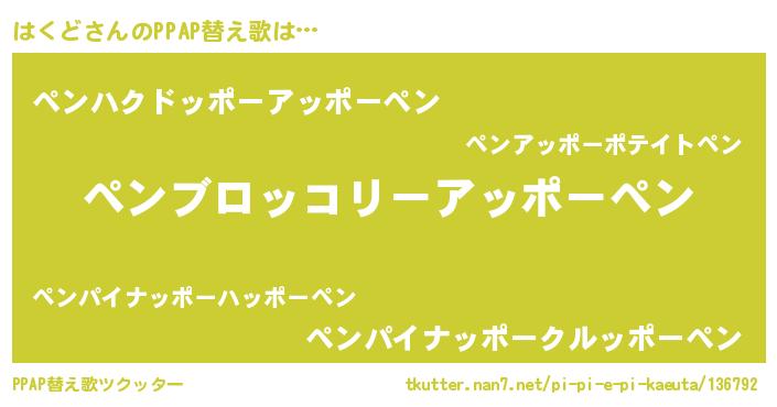 | ピコ太郎風あだ名 | 『ハコ十郎』『ハク六郎』『ハハ太郎』 |