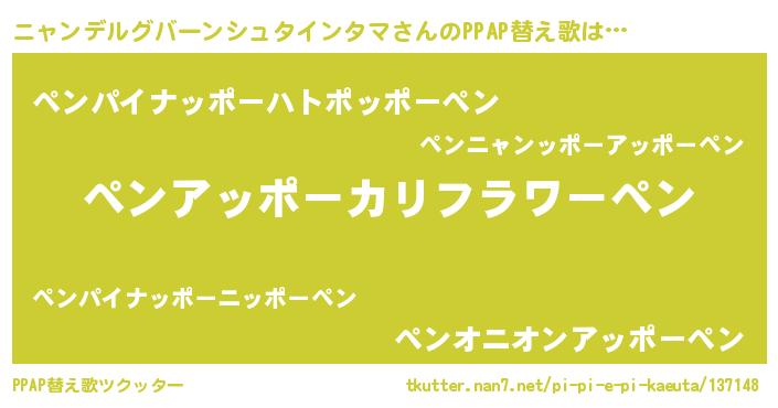 | 欧米人風あだ名 | 『ニャンデルグバーンシュタインタマクリステル』 |