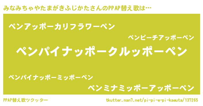 | ピコ太郎風あだ名 | 『ミミ太郎』『ピミ史郎』『ミナ二郎』 |