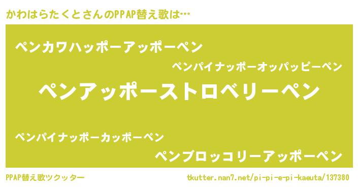 | ピコ太郎風あだ名 | 『ピカ一郎』『カワ太郎』『カコ一郎』 |