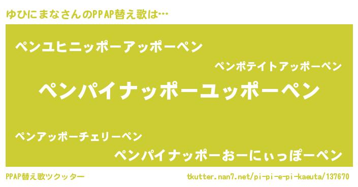 | 意味不明あだ名 | 『永久保存ゆひにまな』『自称ゆひにまな』 |