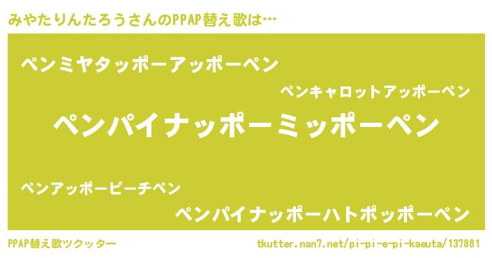 | ヘコむあだ名 | 『みやたりんたろう(震え声)』『みやっ子』 |