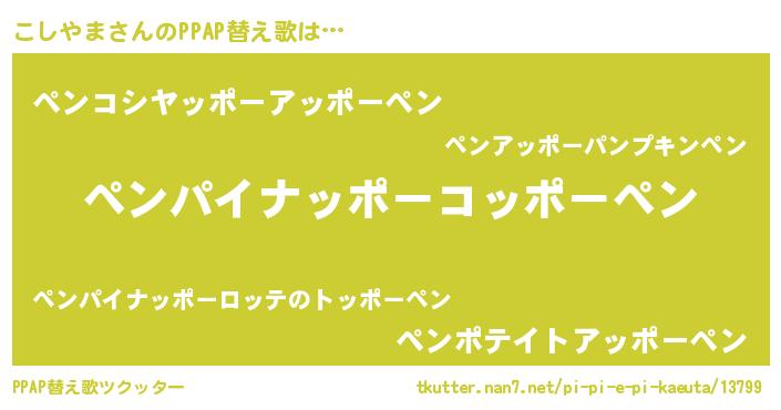 | ピコ太郎風あだ名 | 『ピココ郎』『コシ五郎』『ココ四郎』 |
