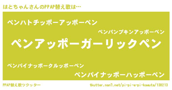 | ピコ太郎風あだ名 | 『ピハ十郎』『ハト一郎』『ピコハ郎』 |