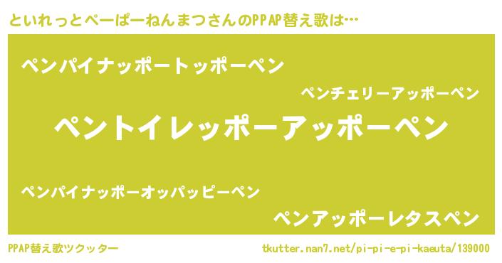 | 欧米人風あだ名 | 『ダレノガレといれっとぺーぱーねんまつ』 |