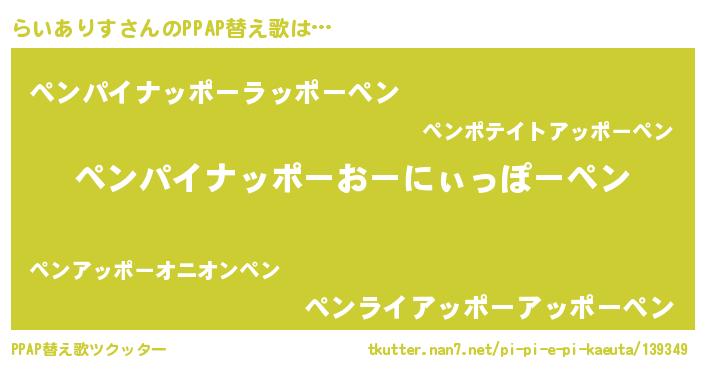 | ヘコむあだ名 | 『らいありす(苦笑)』『らいお』 |