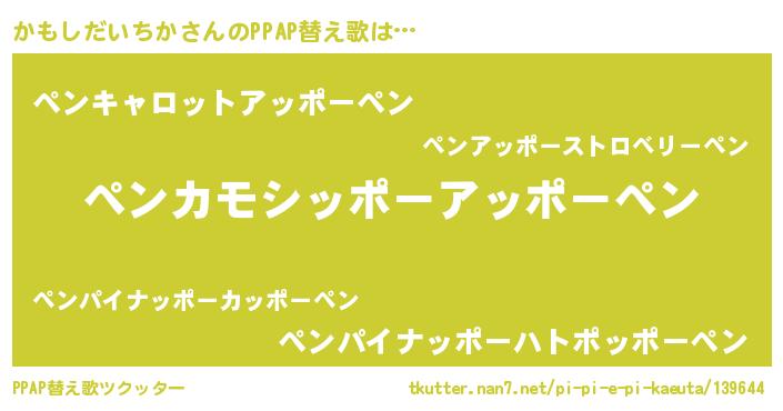 | ピコ太郎風あだ名 | 『カモ史郎』『カコ六郎』『カカ太郎』 |