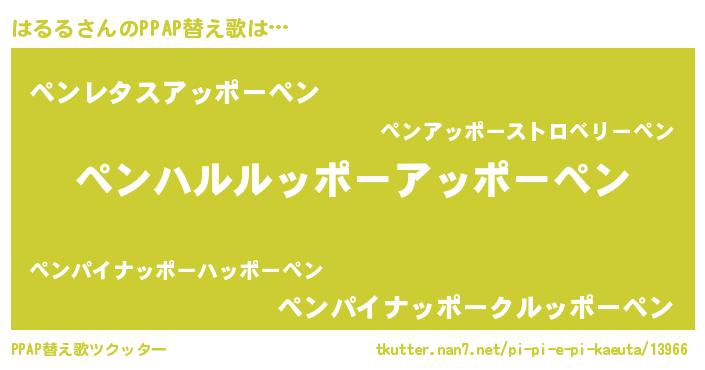 | ピコ太郎風あだ名 | 『ハル十郎』『ハコ史郎』『ハハ太郎』 |