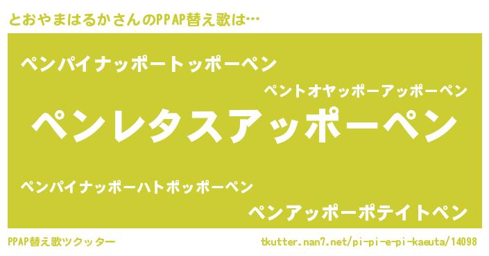 | 料理風あだ名 | 『とおやまはるかの炊き込みご飯』 |
