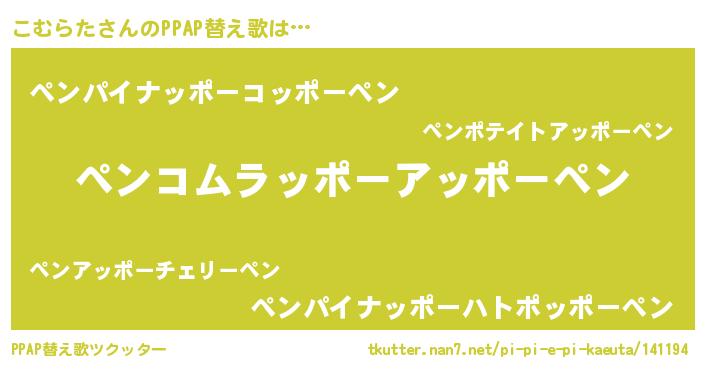 | 意味不明あだ名 | 『なめこ科こむらた属』『自称こむらた』 |