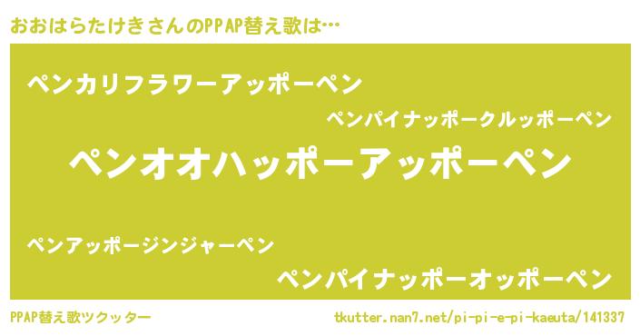 | 欧米人風あだ名 | 『ウサインおおはらたけき』 |