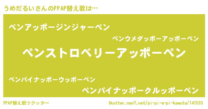 | 意味不明あだ名 | 『自称うめだるい』『ペロリンうめだるい』 |