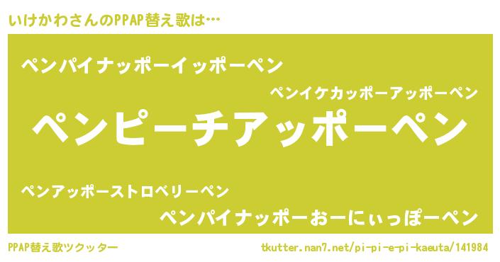 | 意味不明あだ名 | 『ペロリンいけかわ』『永久保存いけかわ』 |