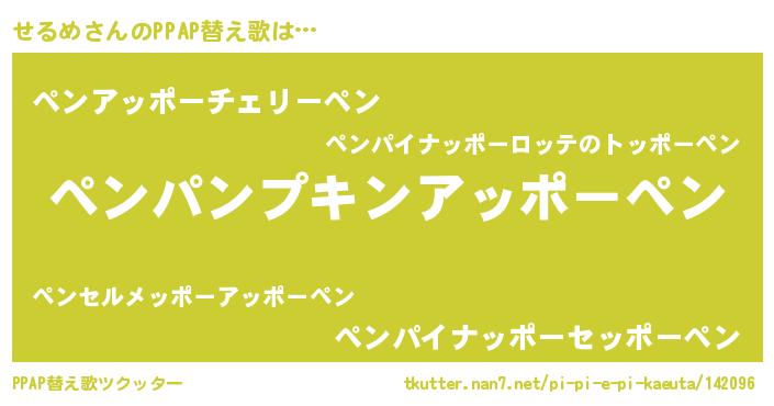 | 男性向けラノベタイトル風あだ名 | 『うちのせるめが世界を掌握している!』 |
