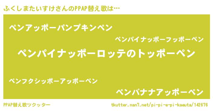 | 男性向けラノベタイトル風あだ名 | 『Re:ふくしまたいすけから始める異世界生活』 |