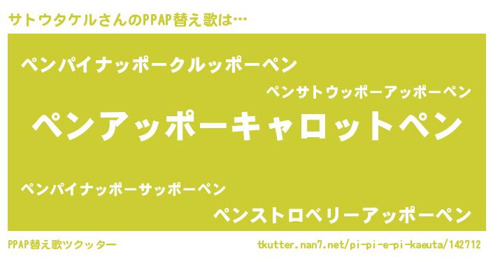 | 欧米人風あだ名 | 『ダレノガレサトウタケル』 |
