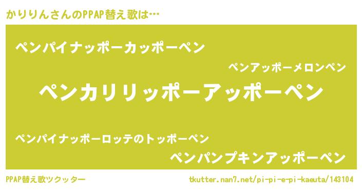 | 男性向けラノベタイトル風あだ名 | 『かりりんの嫁は女の子じゃないと思った?』 |