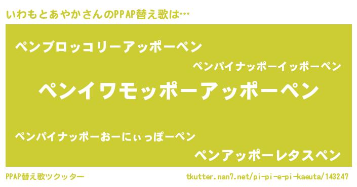 | ピコ太郎風あだ名 | 『イワ八郎』『イコ十郎』『ピイ二郎』 |