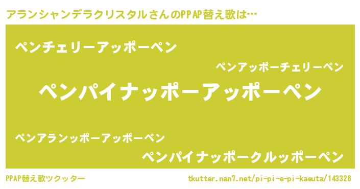 | 男性向けラノベタイトル風あだ名 | 『アランシャンデラクリスタルスレイヤー』 |