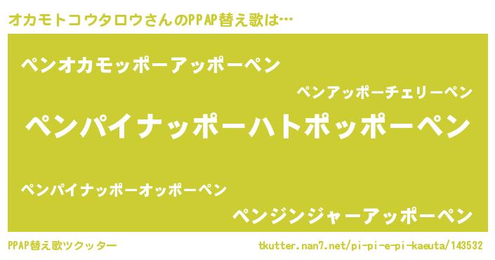 | 男性向けラノベタイトル風あだ名 | 『ノーゲーム・ノーオカモトコウタロウ』 |