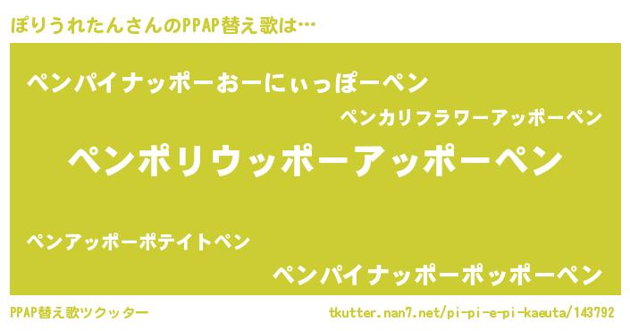 | 男性向けラノベタイトル風あだ名 | 『Re:ぽりうれたんから始める異世界生活』 |