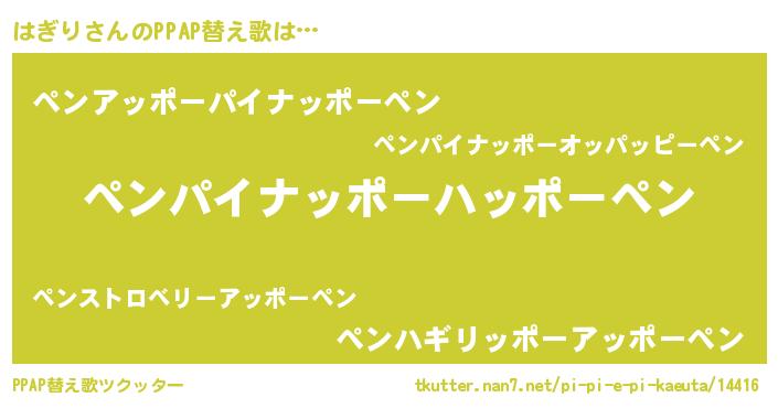 | ピコ太郎風あだ名 | 『ピコハ郎』『ピハ太郎』『ハギ六郎』 |