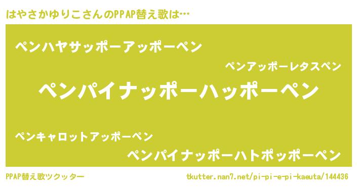 | ヘコむあだ名 | 『はやさかゆりこ(遠い目)』『はやぷりん』 |