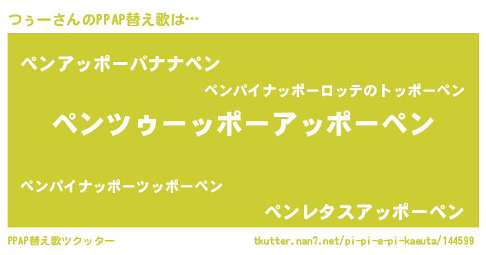 | ピコ太郎風あだ名 | 『ツゥ一郎』『ピツ次郎』『ツコ五郎』 |