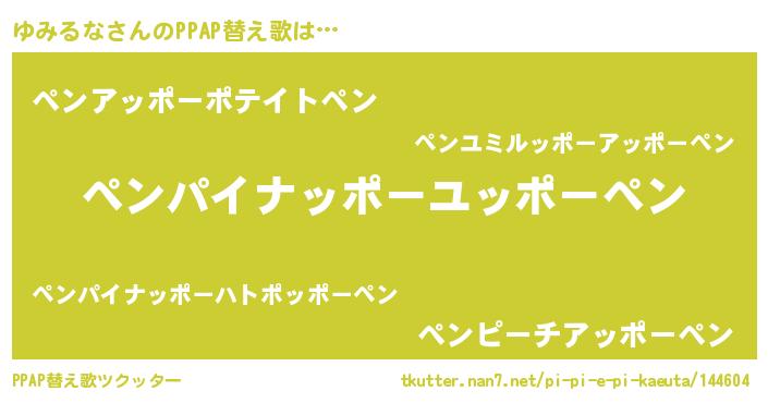 | 男性向けラノベタイトル風あだ名 | 『この素晴らしい世界にゆみるなを!』 |