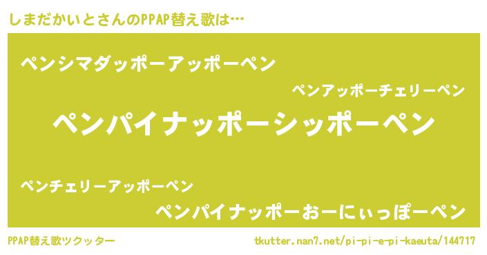 | ピコ太郎風あだ名 | 『ピコシ郎』『シマ史郎』『シシ太郎』 |