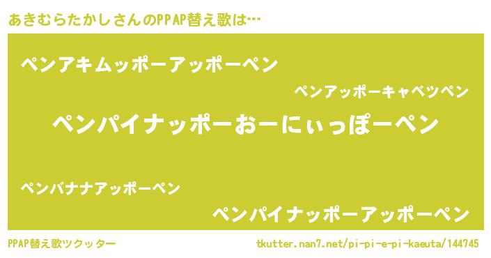 | ピコ太郎風あだ名 | 『アア太郎』『アキ六郎』『ピコア郎』 |