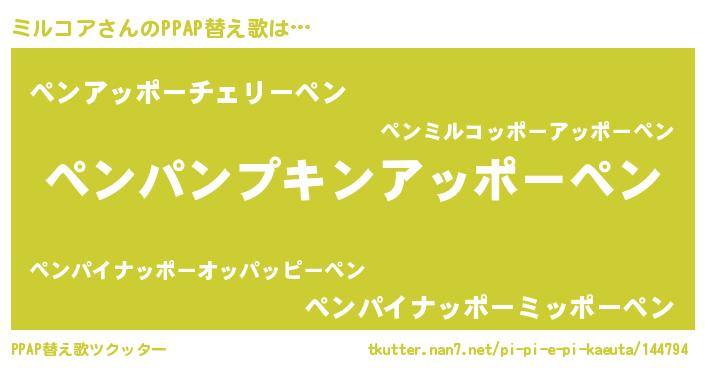 | 意味不明あだ名 | 『ペロリンミルコア』『永久保存ミルコア』 |