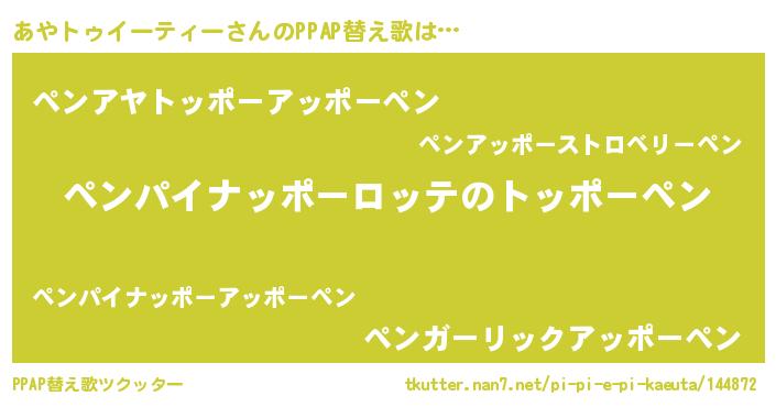 | 欧米人風あだ名 | 『アンジェラ・あやトゥイーティー』 |