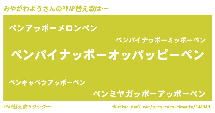 | 男性向けラノベタイトル風あだ名 | 『おまえをオタクにしてやるから、俺をみやがわようにしてくれ! 』 |