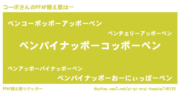| 男性向けラノベタイトル風あだ名 | 『コーポという概念が存在しない退屈な世界 』 |
