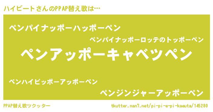 | 意味不明あだ名 | 『ハイビートフォーエバー』 |